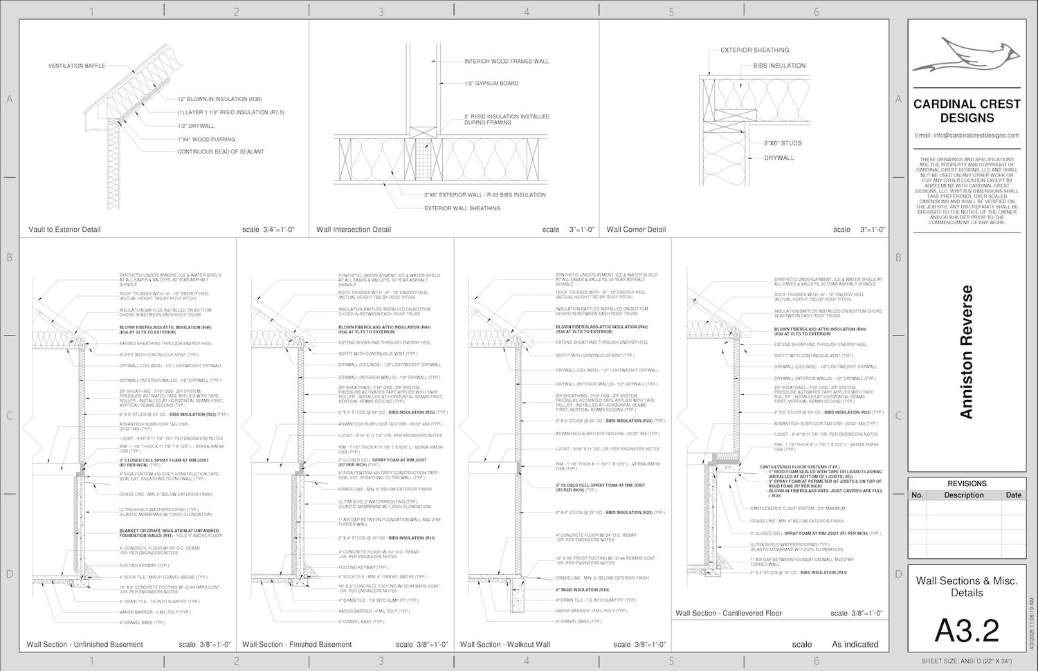 - 2 - 4 Sheets of Details & Section Views - these sheets includes larger scaled views of specific interior and exterior details with additional text callouts, dimensions, and detailing.