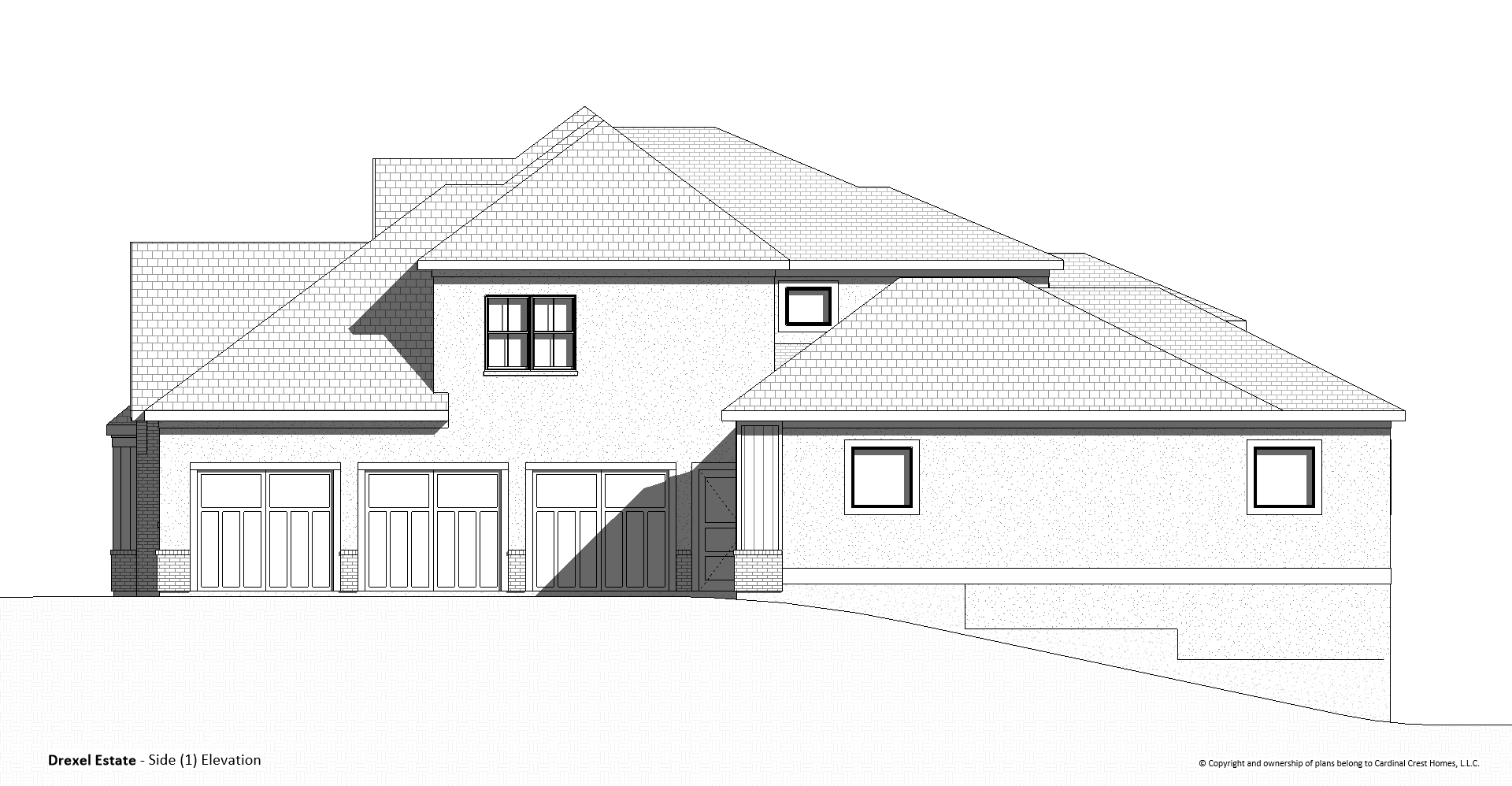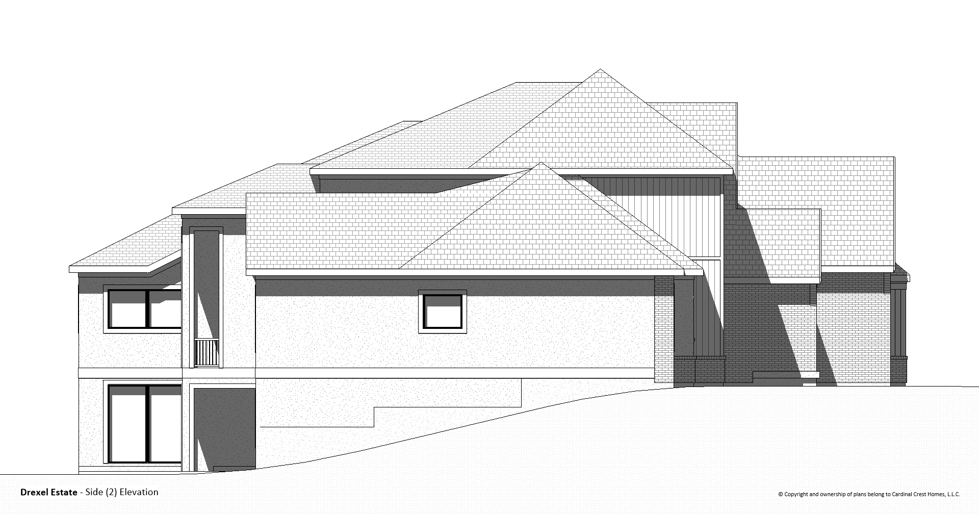 Exterior Elevations - exterior elevations showing the front, back, and sides of the home, including callouts for exterior materials, windows, approximate grade line, plate heights, etc.